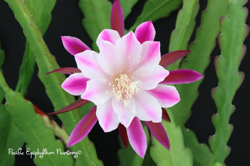 Pacific Epiphyllum Nursery only sells rooted plants grown from our verified stock. To ensure our customers have the best quality, each Epiphyllum plant is shipped in a pot so there’s no need to worry about planting it when they arrive. All our plants are 1 to 3 years old and will ship with new growth. Individual plant sizes will vary between 6 and 28 inches depending on the Epiphyllum variety ordered.